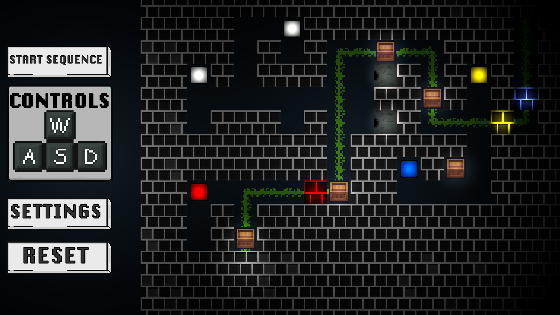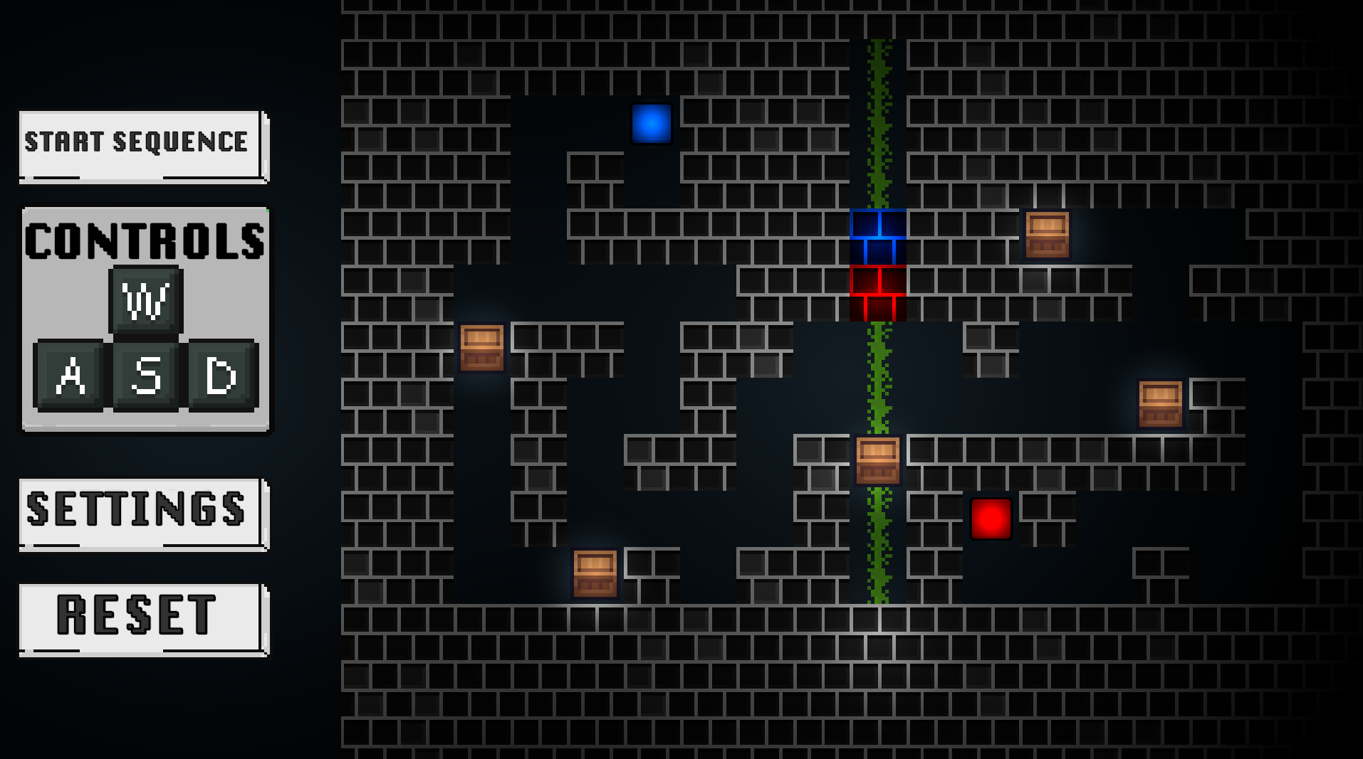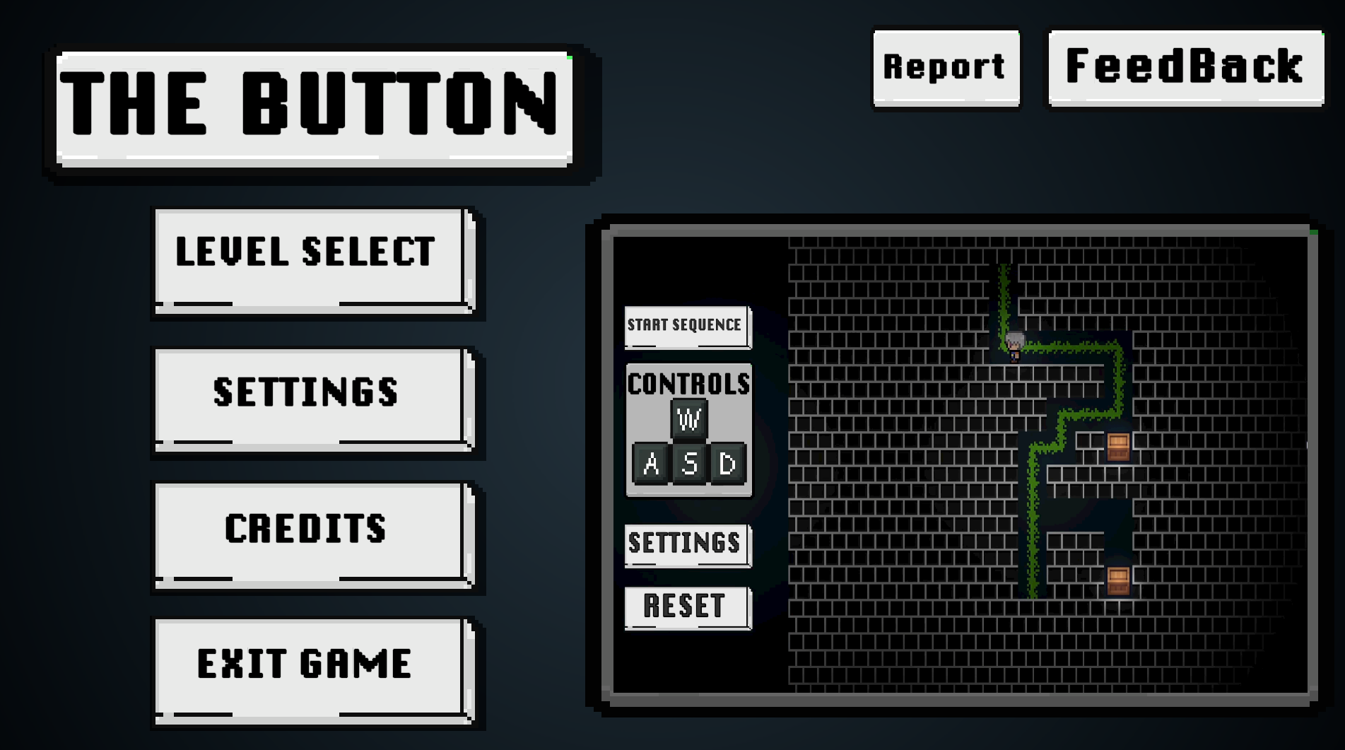 The button is a 2d puzzle game where the goal is to clear a path for a man named Melvin to get through. The only thing is that the way to clear the path is to move boxes around but as your doing that you'll notice they all move in the same direction.