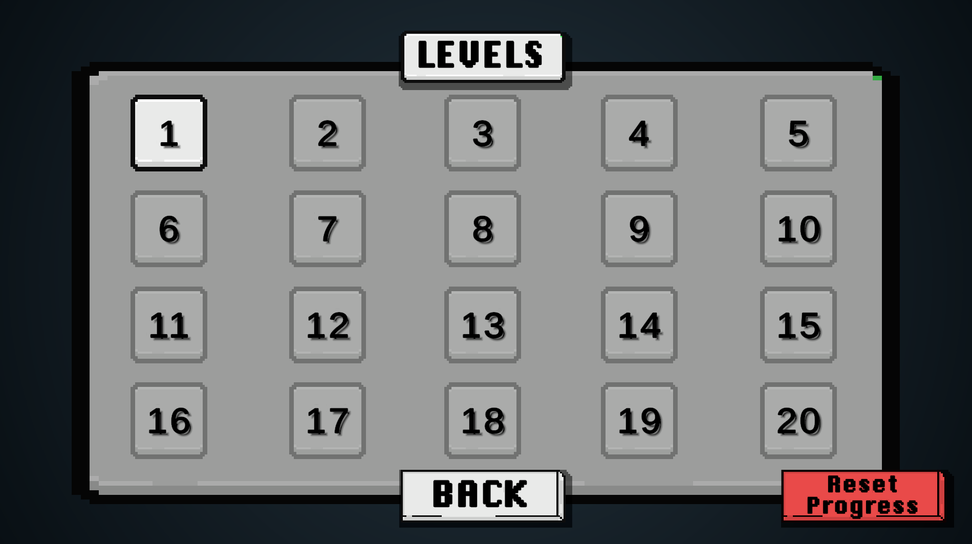 THIS IS THE LEVEL SELECT SCREEN WITH AN OPTION TO RESET YOUR PROGRESS